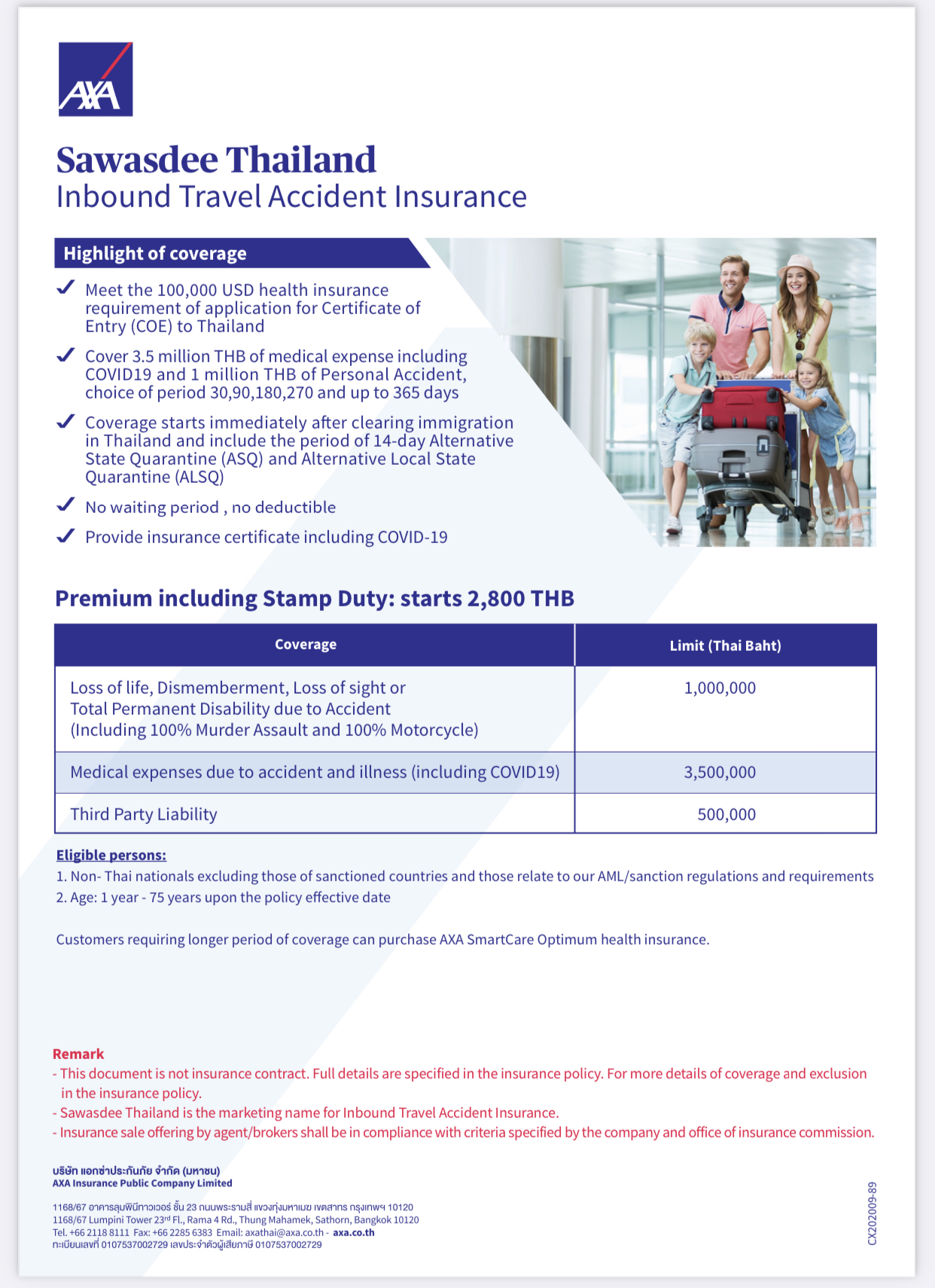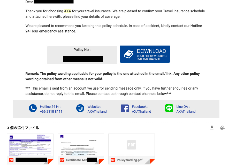 - AXAよりもThai General Insurance Assciationの方が少し格安の場合があるそうなのでご確認ください。