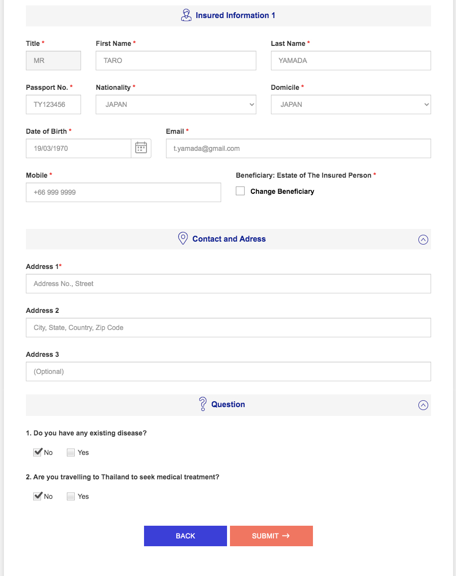 - ⑨ Are you travelling to Thailand to seek medical treatment? 質問2)タイにて医療行為を受けるために渡航されるのですか?