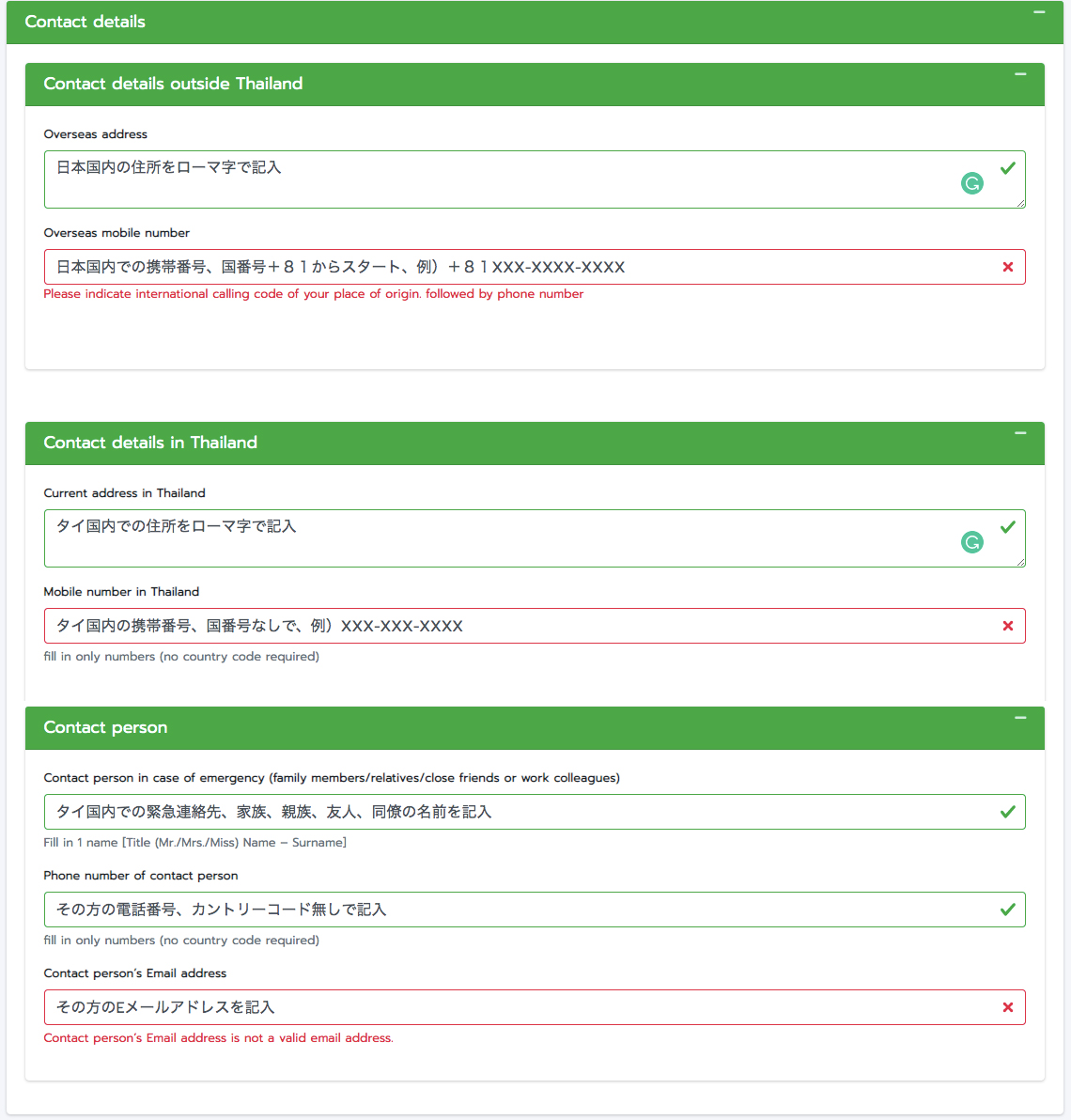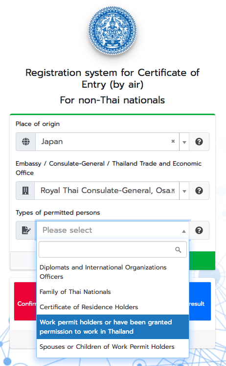 - ワークパーミットを既に所持している方、もしくはタイ国にて就労する許可を与えられた方は「Work Pemit Holders or have been granted permission to work in Thailand」を選択