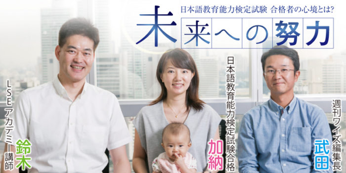 日本語教育能力検定試験に合格した加納さん、LSEアカデミーで教鞭を執る鈴木講師、 そして本誌・武田編集長による座談会を開催。なぜ資格を取ろうと思ったのか?試験合格までの苦労など、心境を振り返ってもらった。