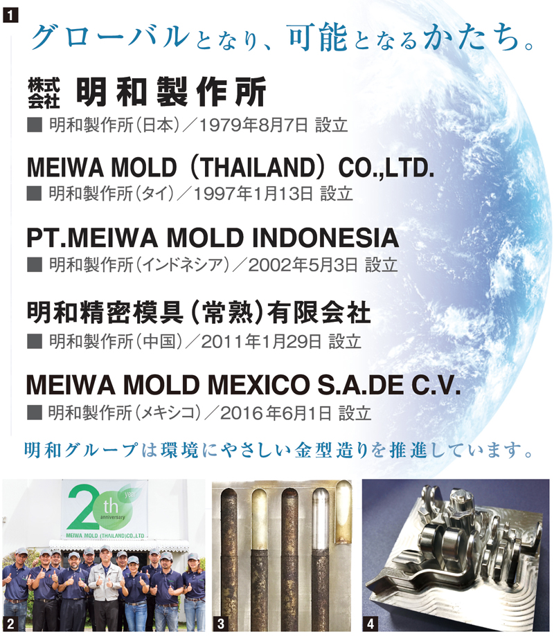 すべての拠点において、日本と変わらない“高品質・コスト提言・アフターサービス”を約束し、樹脂・アルミニウム・亜鉛・マグネシウムと枠にとらわれない金型設計製作を実現。本社のある三重県を基盤に、自動車及び二輪車部品に関する金型のグローバルな供給を掲げるのが、今年でタイ進出20周年を迎えた「MEIWA MOLD」だ。