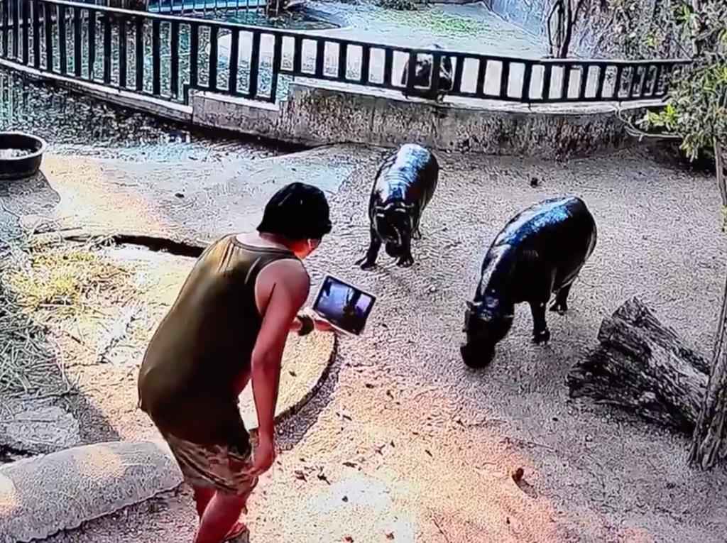 3月17日午後5時頃、東部チョンブリー県のカオキアオ動物園で、人気のコビトカバ「ムーデン」とその母親の飼育エリアに男が無断侵入し、タブレット端末で動画を撮影する事案が発生した。