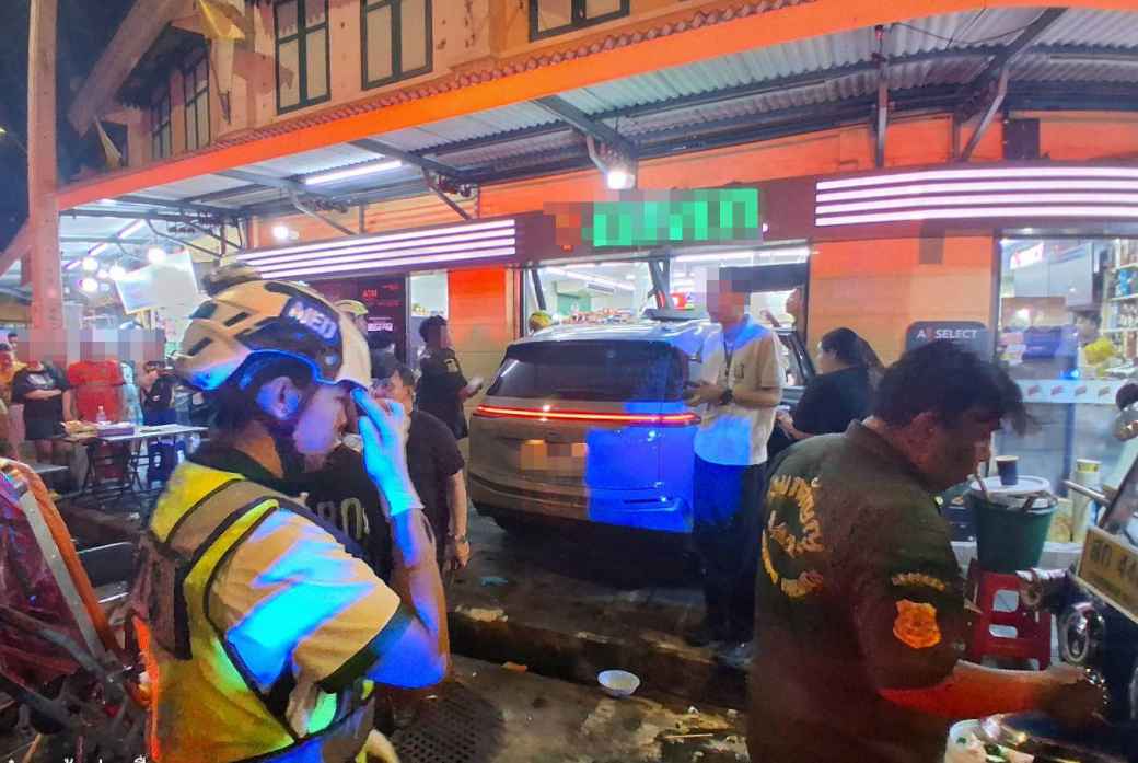 3月31日の深夜、バンコク都プラナコン区、カオサン通りやワット・ボウォンニウェート寺院付近で、乗用EV車がコンビニエンスストアの店舗入口に突っ込む事故が発生した。