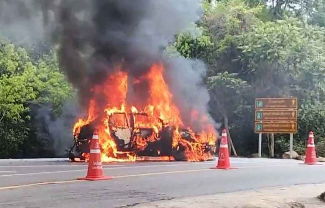 4月27日、カオヤイ国立公園内で観光客の乗用車から出火し、車両が全焼する事故が発生した。