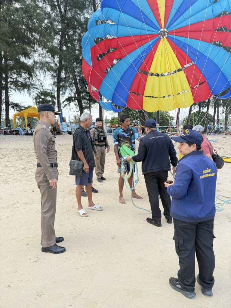 南部プーケット県のカマラビーチで、パラセーリング中に船とパラシュートをつなぐロープが空中で突然ちぎれてしまい、観光客と同行の操縦スタッフが海へ落下する動画が拡散された。
