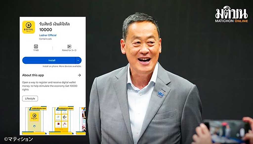 新しく首相に選出されたセター首相が所属するタイ貢献党(プアタイ党)の主要公約である「16歳以上の全国民にデジタル通貨1万B配布」が悪用されて、現在「偽1万B配布アプリ」が大量に出回っている。