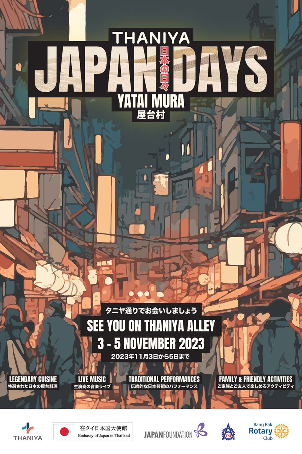 タニヤプラザと在タイ日本国大使館などが主催で、タニヤ通りにて日本イベントTHANIYA JAPAN DAYSを開催。「屋台村」というコンセプトの元、KENJI’S LABをはじめ、SHAKARIKI432、SAKE NO MISE、ABURIなどの日系飲食店が出店。太鼓やよさこい踊りなどのステージパフォーマンスも行われる。