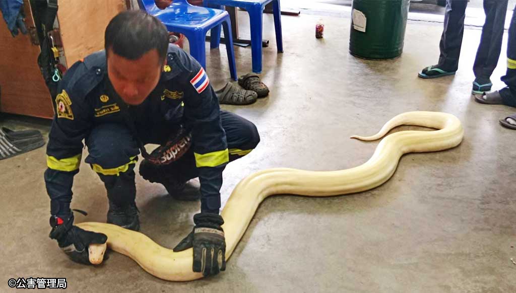 2023.12.11 タイローカルニュース 脱走した4mの大蛇都内の住宅で発見 バンコク都ラップラオ101駅(イエローライン)周辺の住居で12月5日、全長約4mのビルマニシキヘビが発見された。発見当初はエキゾチックペットの飼育場所から脱走した個体だと判断され、ホアマーク消防署が保護。 しかし同日午後4時頃、飼い主と名乗る男性が同消防署に現れてヘビを受け取りに来た。 WISE公式LINEの友だち登録で、記事の続きをご覧になれます! 新規友達追加 既に友達登録済の方はこちら LINE友達追加ボタンで問題が発生する場合、こちらからご報告下さい。 WiSE公式LINEとは? WiSE公式LINEでは、毎日タイについての最新ニュースを配信。 タイ生活に欠かせない情報や、WiSE公式LINEフォロワー限定の、プレゼントキャンペーン等も実施しています。 この機会に是非ご登録ください。 今週のタイのニュース動画まとめ WiSE公式LINE登録後に動画が視聴可能となります。 今週のタイのニュース動画まとめ