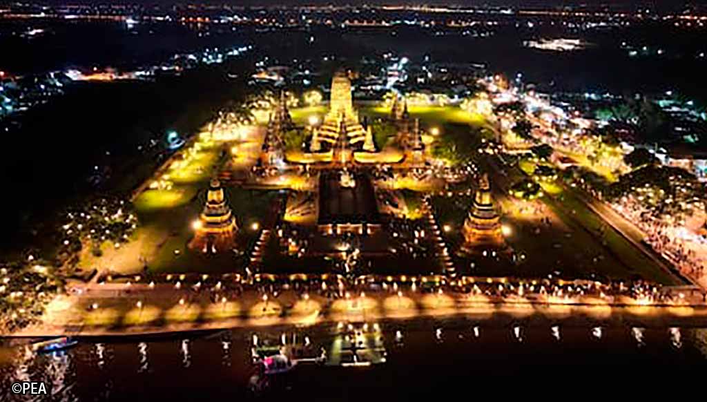 世界遺産に登録されている中部アユタヤ県のアユタヤ歴史公園で、発光ダイオード(LED)を使った遺跡のライトアップが行われている。タイ文化省とタイ地方電力公社(PEA)によるもので、観光振興が狙い。