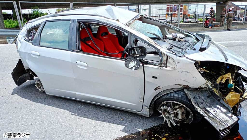 5月26日、中部ノンタブリー県ナコーンイン通りで車が高架橋から転落する事故が発生。