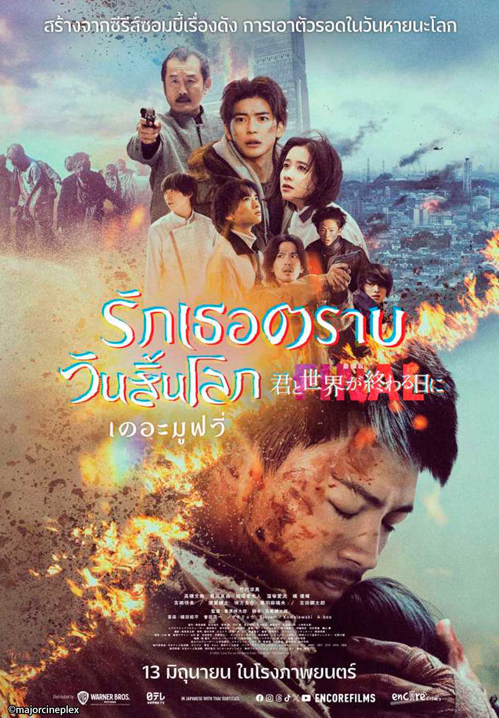 2024.06.13 タイローカルニュース 劇場版「君と世界が終わる日に」本日13日からタイで上映開始 タイで劇場版「君と世界が終わる日に(英題:Love You as the World Ends)」が、6月13日からメジャー・シネプレックス、SFシネマで上映開始する。 劇場版「君と世界が終わる日に」 WISE公式LINEの友だち登録で、記事の続きをご覧になれます! 新規友達追加 既に友達登録済の方はこちら LINE友達追加ボタンで問題が発生する場合、こちらからご報告下さい。 WiSE公式LINEとは? WiSE公式LINEでは、毎日タイについての最新ニュースを配信。 タイ生活に欠かせない情報や、WiSE公式LINEフォロワー限定の、プレゼントキャンペーン等も実施しています。 この機会に是非ご登録ください。 今週のタイのニュース動画まとめ WiSE公式LINE登録後に動画が視聴可能となります。 今週のタイのニュース動画まとめ