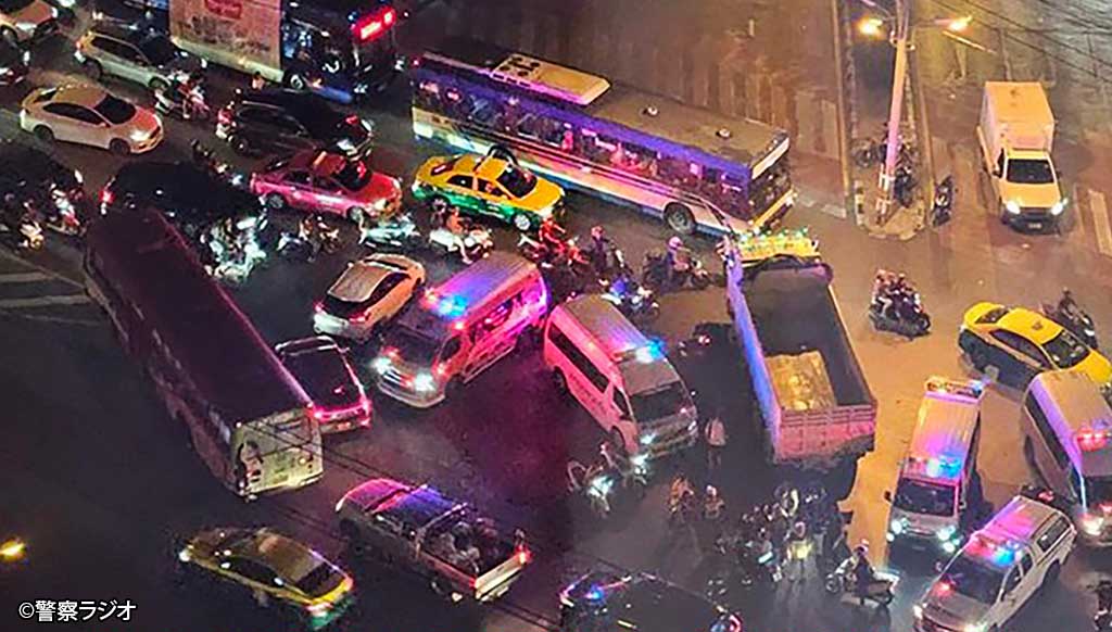 2024.06.24 タイローカルニュース クロントゥーイ交差点で大型トラックとバイクが衝突 6月18日午後9時過ぎ、バンコク都ラマ4世通りのクロントゥーイ交差点で衝突事故が発生した。報告によると大型トラックとバイクが衝突し、負傷者も確認されているという。 この事故の影響により、現場周辺の道路では交通渋滞が発生していたとのこと。(6月18日=マティション) WISE公式LINEの友だち登録で、記事の続きをご覧になれます! 新規友達追加 既に友達登録済の方はこちら LINE友達追加ボタンで問題が発生する場合、こちらからご報告下さい。 WiSE公式LINEとは? WiSE公式LINEでは、毎日タイについての最新ニュースを配信。 タイ生活に欠かせない情報や、WiSE公式LINEフォロワー限定の、プレゼントキャンペーン等も実施しています。 この機会に是非ご登録ください。 今週のタイのニュース動画まとめ WiSE公式LINE登録後に動画が視聴可能となります。 今週のタイのニュース動画まとめ