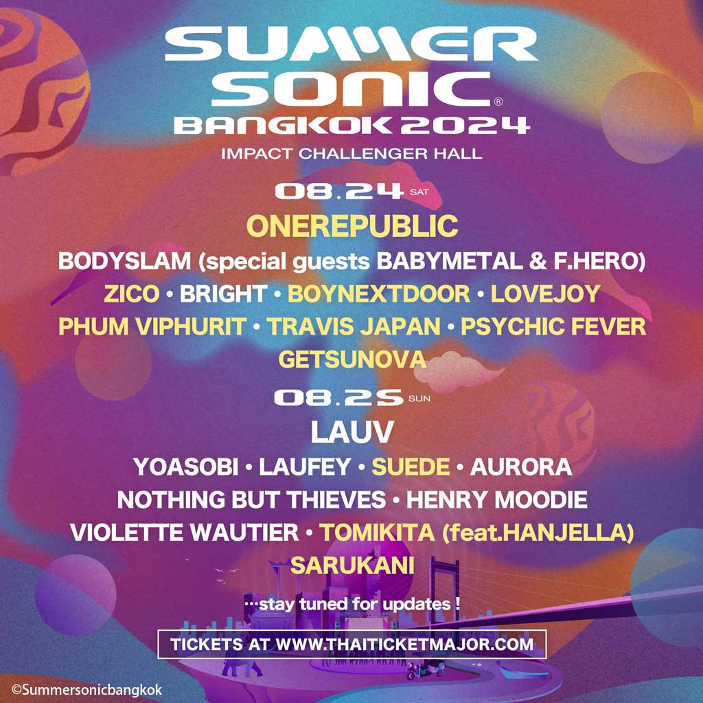 8月24日〜25日の2日間、インパクト・ムアントーンターニーで開催される「サマーソニック・バンコク(SUMMER SONIC BANGKOK)」の第2弾出演アーティストが発表された。