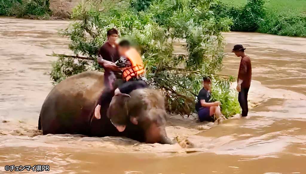 事故は6月28日、北部チェンマイ県メーテーン市で発生。大雨によって川が氾濫し、ラフティング中の観光客4名が乗る筏が転覆した。目撃者である僧侶によると、幸い筏は中洲に生えた木に引っかかっていたが、非常に不安定な状態のままレスキュー隊を待っていたという。偶然その現場に居合わせていた象と象使いによって救助活動が行われ、観光客は全員救助された。(6月30日=タイラット)