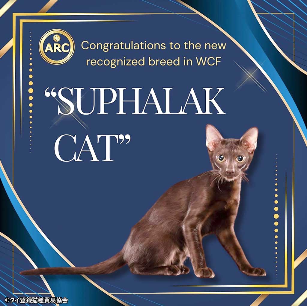 2024.08.26 タイローカルニュース タイの原産「スパラック猫」WCF正式猫種に承認 タイ登録猫種貿易協会(ARC)は8月20日、タイ原産の猫種「スパラック猫(Suphalak Cat)」がドイツで行われた世界猫連盟(WCF)会議にて正式猫種として承認されたことを発表した。 正式猫種に認定されるには、その猫種に関連する歴史的背景、特徴、遺伝子情報を基に、猫種標準を設ける必要があるという。 WISE公式LINEの友だち登録で、記事の続きをご覧になれます! 新規友達追加 既に友達登録済の方はこちら LINE友達追加ボタンで問題が発生する場合、こちらからご報告下さい。 WiSE公式LINEとは? WiSE公式LINEでは、毎日タイについての最新ニュースを配信。 タイ生活に欠かせない情報や、WiSE公式LINEフォロワー限定の、プレゼントキャンペーン等も実施しています。 この機会に是非ご登録ください。 今週のタイのニュース動画まとめ WiSE公式LINE登録後に動画が視聴可能となります。 今週のタイのニュース動画まとめ