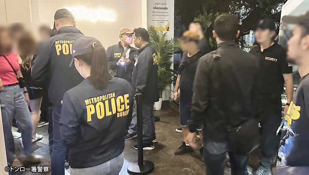 トンロー署警察と首都圏警察が8月25日午前3時頃、バンコク都ワタナ区トンローのJアベニューにある娯楽施設を強制捜査し、無許可営業として摘発。また、必要な営業許可証を提示できなかったため、責任者3人を逮捕した。