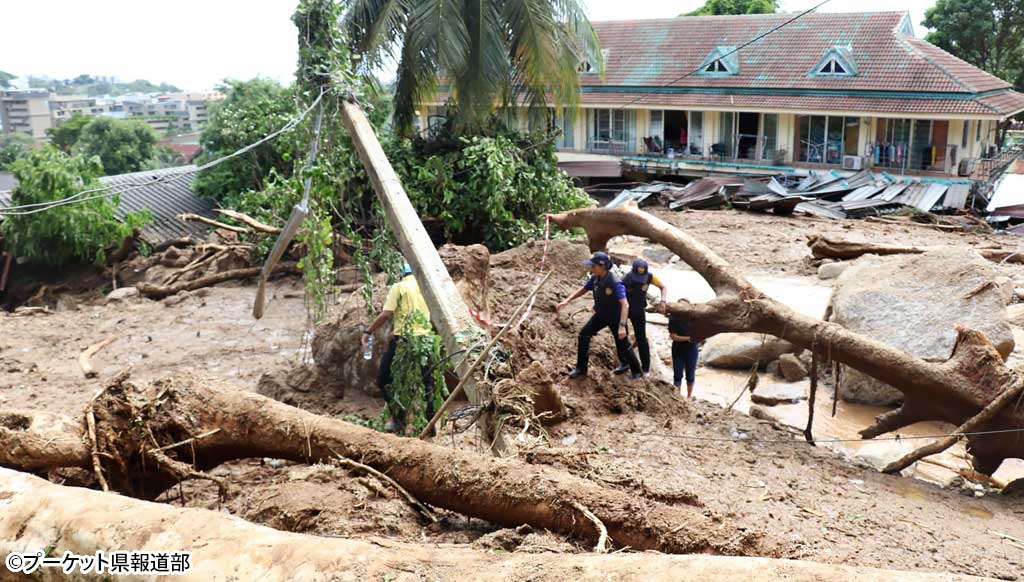 8月23日夕方、南部プーケット県ムアン市で連日の大雨により土砂崩れが発生し、アパートメントなどの住居が全壊する被害を受けた。