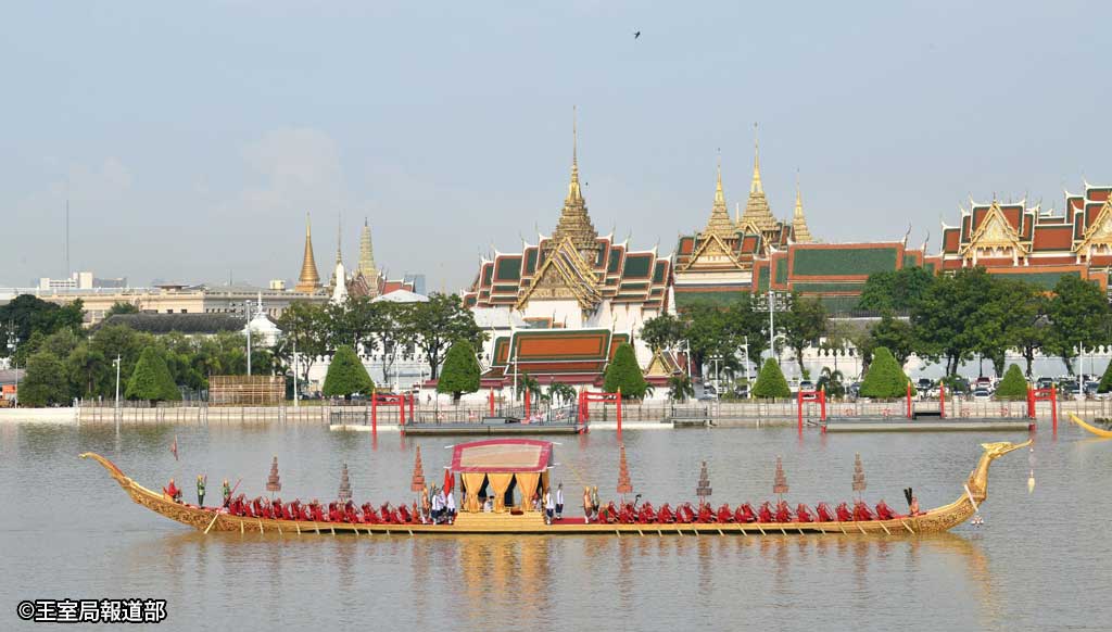 海兵の漕ぎ手2200人が乗る王室御座船52隻が、午後3時からチャオプラヤー川を下り、ラマ8世橋からワット・アルン寺院へ移動する計1.2kmの大規模パレード。