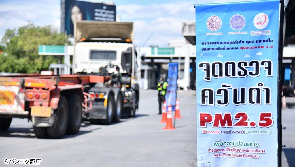 10月29日、バンコク都庁が乾季に伴うPM2.5による大気汚染対策に関する会見を行い、措置の1つとして「低排出区域(Low Emission Zone)」の導入が発表された。この措置は大気汚染濃度が深刻な日に実施され、排出ガス量の点検が済んでいないトラックが制限区域に進入することを禁止する規制。