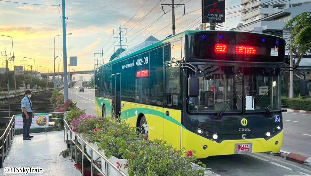 BRTはバンコク都庁が運営し、BTSチョンノンシー(サトーン)駅とBTSタラートプルー(ラチャプルック)駅を繋ぐ全14駅の路線バス。ラビットカードおよび公式LINE「BRT E-Ticket」で支払いが可能。