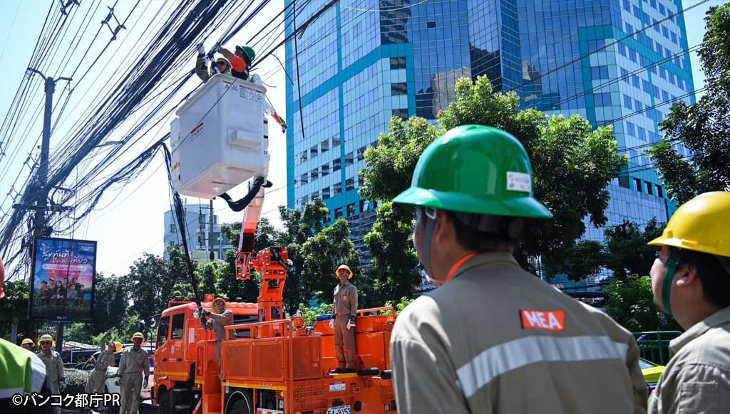 また、今年2024年の計画ではラマ4世通り、アソークモントリー通り、バンタットン通り、ジャランサニットウォン通りなどの都内主要道路を含む32区間の合計68kmの通信線を地中化することが予定されており、現在は92.8%が完了したと発表している。(10月24日=マティション)