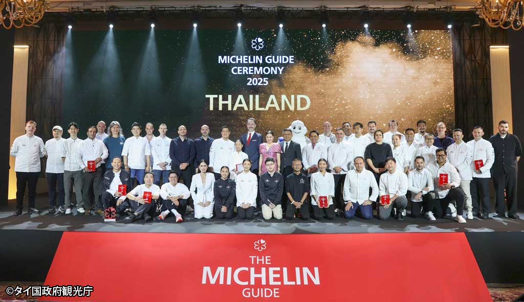 2024.11.29 タイローカルニュース 25年タイ版ミシュランガイド「Sorn」がタイ初の三つ星に選出 11月28日、2025年のタイ版ミシュランガイドが発表され、タイ南部料理レストラン「Sorn」がタイでは初となる三つ星レストランに選出された。 内訳は三つ星1軒、二つ星7軒、一つ星28軒、グリーンスター4軒、ビブグルマン156軒、ミシュランセレクテッド270軒で、星付きに昇格したレストランは5軒だという。 WISE公式LINEの友だち登録で、記事の続きをご覧になれます! 新規友達追加 既に友達登録済の方はこちら LINE友達追加ボタンで問題が発生する場合、こちらからご報告下さい。 WiSE公式LINEとは? WiSE公式LINEでは、毎日タイについての最新ニュースを配信。 タイ生活に欠かせない情報や、WiSE公式LINEフォロワー限定の、プレゼントキャンペーン等も実施しています。 この機会に是非ご登録ください。 今週のタイのニュース動画まとめ WiSE公式LINE登録後に動画が視聴可能となります。 今週のタイのニュース動画まとめ