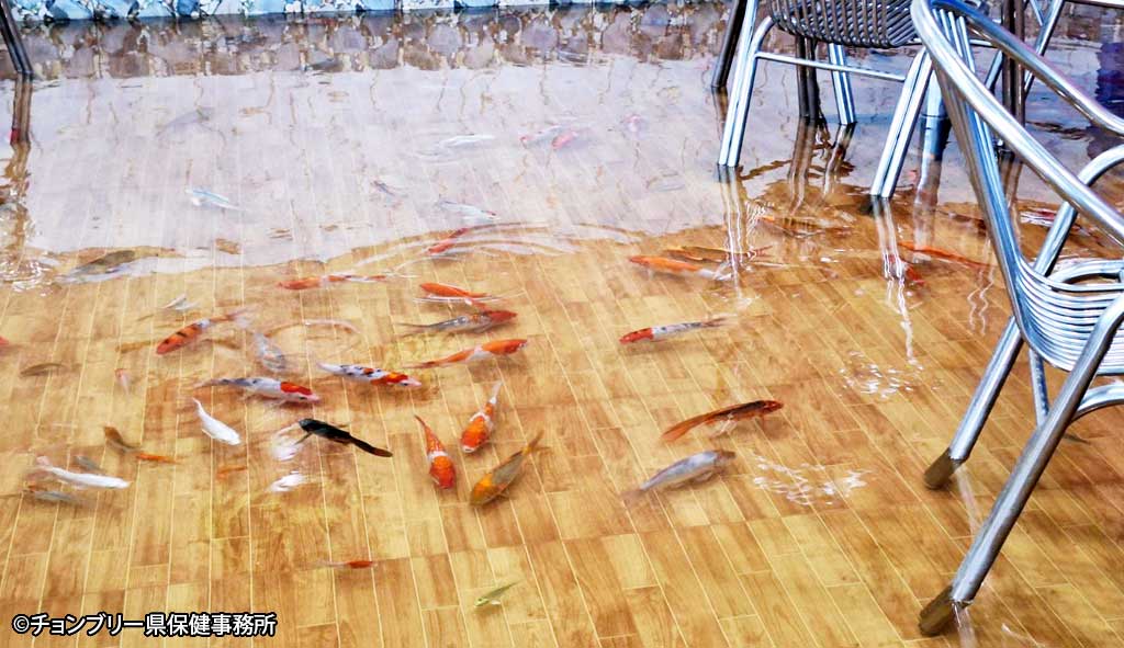 東部チョンブリー県で営業していた魚が足元を泳ぐ「鯉カフェ」が11月26日、衛生上に問題があるとして保健事務所による調査が行われた。同事務所によると、カフェは飲食店衛生法に違反しており、動物関連事業の営業許可もなかったという。