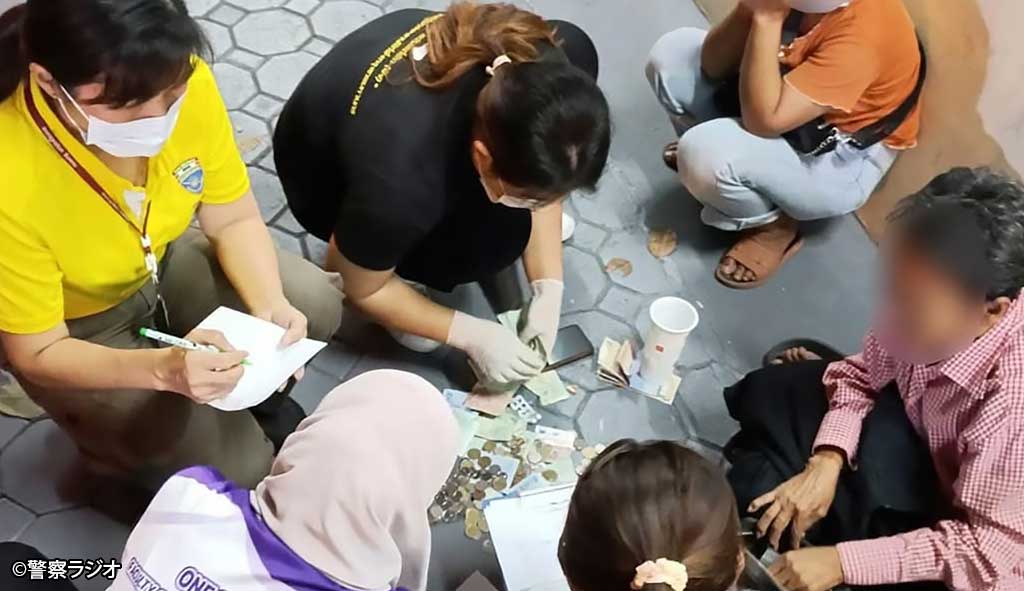 12月12日夜、バンコク都貧困者保護センターや警察などによってバンコク都心部各所で物乞い集団への取り締まりが行われ、12人が逮捕された。12人の内訳はタイ人8人と外国人4人(カンボジア人2人、ラオス人1人、ミャンマー人1人)で、うちタイ人の女は現金30万Bを所持し、口座には100万Bの残高があったという。