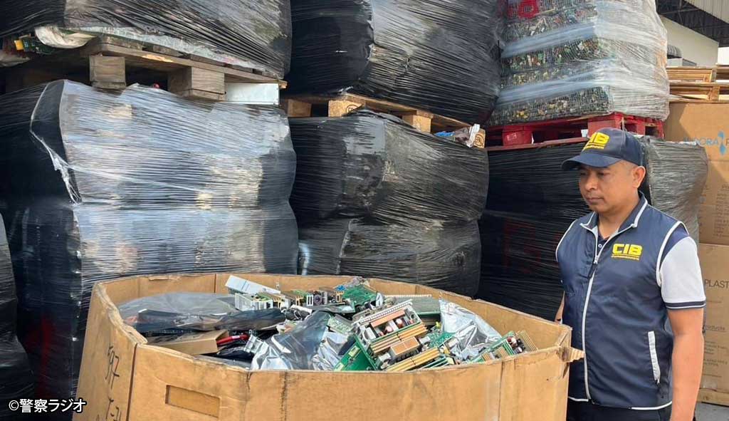 タイ警察中央捜査部(CIB)によると、東部プラーチーンブリー県でリサイクル工場に運んでいる途中の電子廃棄物を大量に摘発し、出処を調査したところ無許可で電子廃棄物を扱うゴミ処理工場を発見したという。工場の管理者によると、オーナーは中国人であると判明している。(1月5日=マティション)