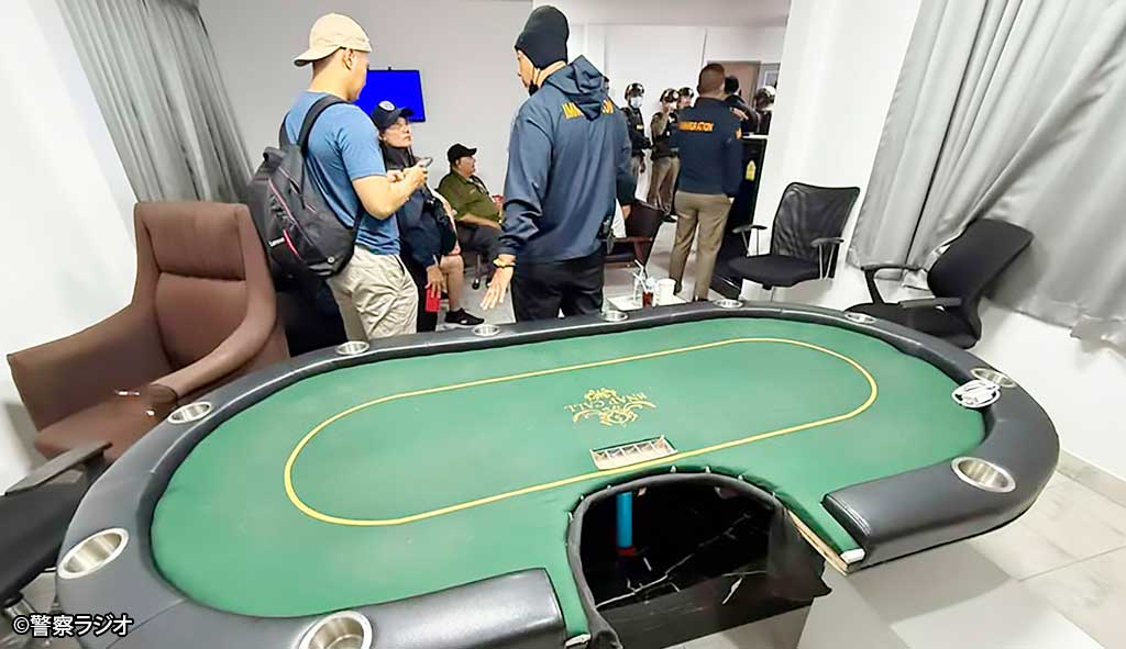 2025.01.13 タイローカルニュース ジョムティエンビーチ付近でポーカー賭博場摘発 1月6日午後9時30分頃、東部チョンブリー県ジョムティエンビーチ近くの施設でポーカー賭博場が摘発された。 チョンブリー県入国管理局によると、宿泊施設の一室が賭博場に改造され、7人の外国籍(アメリカ、イギリス、ロシア、オーストラリア)の賭博者とディーラーなどをつとめる5人のタイ人男女、合計12人が逮捕されたという。(1月7日=デイリーニュース) WISE公式LINEの友だち登録で、記事の続きをご覧になれます! 新規友達追加 既に友達登録済の方はこちら LINE友達追加ボタンで問題が発生する場合、こちらからご報告下さい。 WiSE公式LINEとは? WiSE公式LINEでは、毎日タイについての最新ニュースを配信。 タイ生活に欠かせない情報や、WiSE公式LINEフォロワー限定の、プレゼントキャンペーン等も実施しています。 この機会に是非ご登録ください。 今週のタイのニュース動画まとめ WiSE公式LINE登録後に動画が視聴可能となります。 今週のタイのニュース動画まとめ