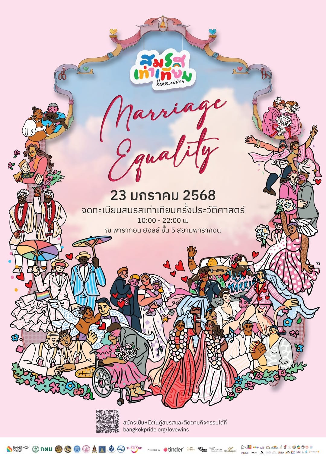 バンコクではサイアムパラゴンで「Marriage Equality」が開催され、正式な同性婚の登録、多様性を受け入れる家庭の作り方に関するディスカッション、タイにおける平等婚の歴史展示会、人気アーティストによるミニコンサートなどが行われ、チャッチャート都知事らも出席する予定。