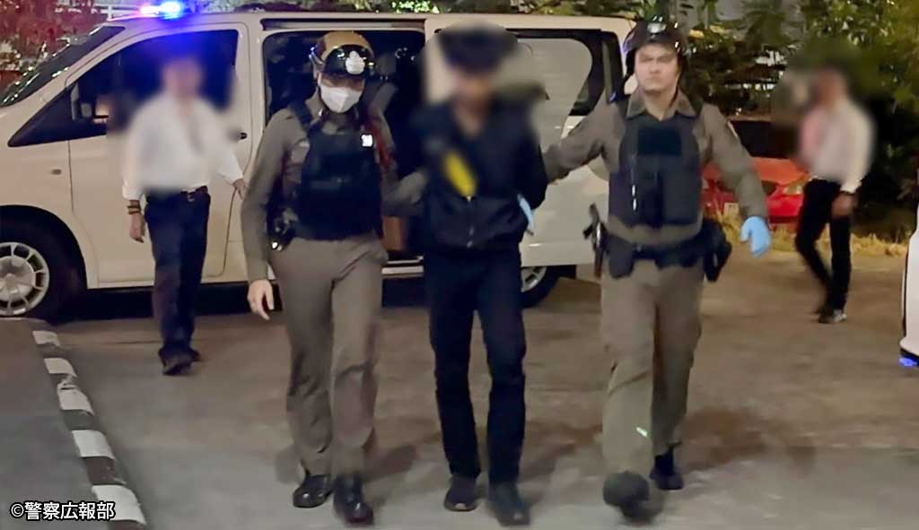 2月23日午後10時頃、バンコク都心部のラチャプラソン交差点近くにある某商業施設内で刺殺事件が発生。犯人の男(タイ人・27歳)は現場で逮捕された。