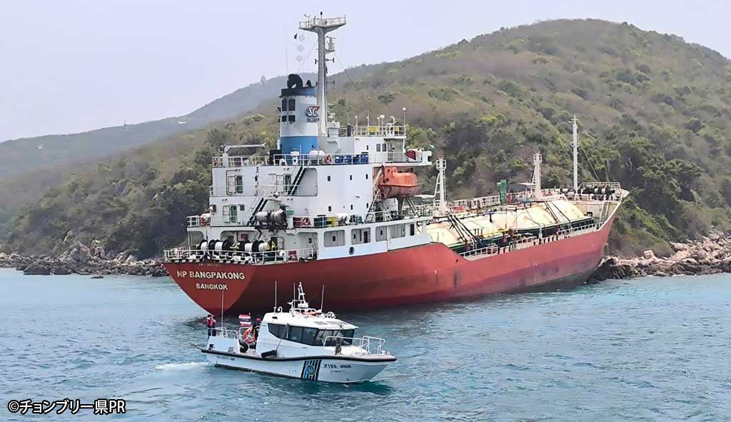 東部チョンブリー県パタヤ沖に浮かぶラン島ターウェンビーチ近くで3月25日、LPG(液化石油ガス)を運搬していた貨物船が岩場に座礁する事故が発生。