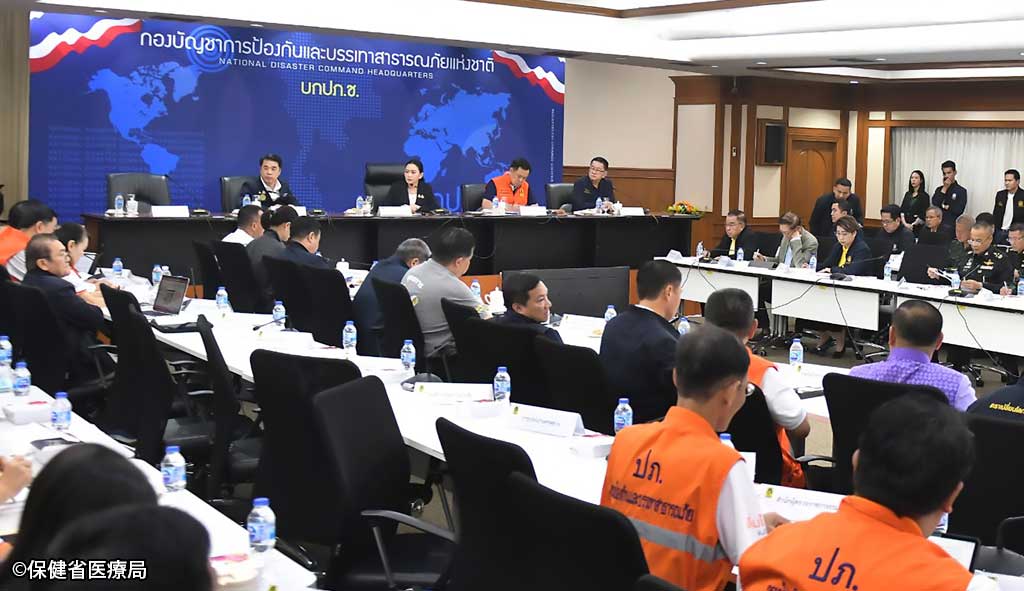 3月29日、災害防止軽減局本部で28日に発生したミャンマー地震についてのフォローアップ会議が行われ、ペートンタン首相も出席した。
