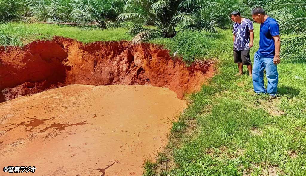 2025.04.28 タイローカルニュース アブラヤシの栽培畑に直径約20mのシンクホール発生 南部クラビー県の住民が所有するアブラヤシの栽培畑に大型のシンクホールが発生。 4月20日にクラビー災害防止軽減局と鉱物資源局が調査にあたり、直径約20m、深さ10mほどの陥没だと判明した。穴から半径50m範囲の地面には複数カ所の亀裂が生じており、1カ月〜1年は陥没が継続する可能性もあるという。 WISE公式LINEの友だち登録で、記事の続きをご覧になれます! 新規友達追加 既に友達登録済の方はこちら LINE友達追加ボタンで問題が発生する場合、こちらからご報告下さい。 WiSE公式LINEとは? WiSE公式LINEでは、毎日タイについての最新ニュースを配信。 タイ生活に欠かせない情報や、WiSE公式LINEフォロワー限定の、プレゼントキャンペーン等も実施しています。 この機会に是非ご登録ください。 今週のタイのニュース動画まとめ WiSE公式LINE登録後に動画が視聴可能となります。 今週のタイのニュース動画まとめ