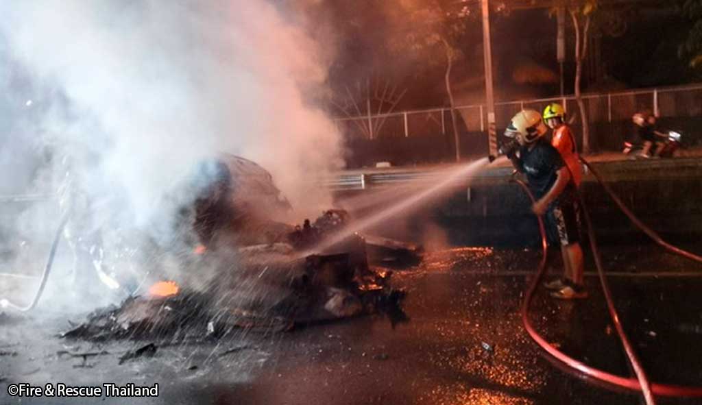 バンコク都タウィーワタナー区ボーロマラーチャチョンナニー通りで4月23日、フェラーリを含む3台の車両が衝突する事故が発生。衝突したフェラーリとベンツは爆発して炎上した。2車とも全焼した他、前を走るピックアップトラックにも衝突した模様。トラックの運転手は軽傷を負ったが、幸い死傷者はなかった。