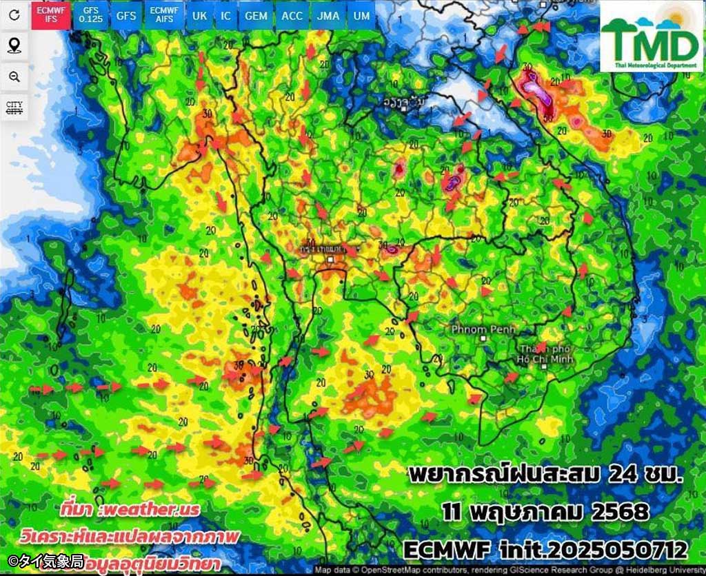 2025.05.8 タイローカルニュース 9日からの3連休に影響か暑季の暴風雨に警戒を 5月8日、タイ気象局が5月9日〜12日の3連休に暑季の暴風雨が発生する恐れがあるとして警報を発表した。 ベトナムからの寒気団が猛暑のタイ東北部に流れ込んでくることにより、タイ東北部を中心に雷雨、暴風、ひょうや激しい雨が予想されている。悪天候はその後、タイ北半分に拡大するとみられている。 WISE公式LINEの友だち登録で、記事の続きをご覧になれます! 新規友達追加 既に友達登録済の方はこちら LINE友達追加ボタンで問題が発生する場合、こちらからご報告下さい。 WiSE公式LINEとは? WiSE公式LINEでは、毎日タイについての最新ニュースを配信。 タイ生活に欠かせない情報や、WiSE公式LINEフォロワー限定の、プレゼントキャンペーン等も実施しています。 この機会に是非ご登録ください。 今週のタイのニュース動画まとめ WiSE公式LINE登録後に動画が視聴可能となります。 今週のタイのニュース動画まとめ