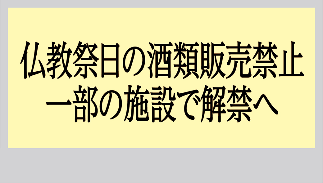 2025.05.19 タイローカルニュース 仏教祭日の酒類販売禁止一部の施設で解禁へ タイの仏教祝日における酒類販売に関する規制が緩和されることが閣議決定され、5月9日の官報に掲載。11日の「仏誕節(ヴィサカブーチャ)」に適用され、一部の施設に限り酒類の販売が可能となった。 販売が可能となる施設は下記。 WISE公式LINEの友だち登録で、記事の続きをご覧になれます! 新規友達追加 既に友達登録済の方はこちら LINE友達追加ボタンで問題が発生する場合、こちらからご報告下さい。 WiSE公式LINEとは? WiSE公式LINEでは、毎日タイについての最新ニュースを配信。 タイ生活に欠かせない情報や、WiSE公式LINEフォロワー限定の、プレゼントキャンペーン等も実施しています。 この機会に是非ご登録ください。 今週のタイのニュース動画まとめ WiSE公式LINE登録後に動画が視聴可能となります。 今週のタイのニュース動画まとめ