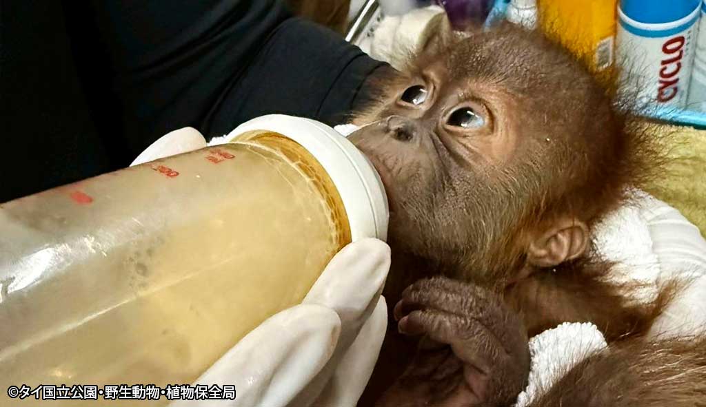 警察はガソリンスタンドでオランウータンの引き渡し準備をしていたタイ人の男を拘束し、車の中からオランウータンの赤ちゃん2頭(生後1年1頭と生後約1カ月1頭)を発見。2頭は無事保護され、タイ国立公園・野生動物・植物保全局(DNP)の施設に送られた。