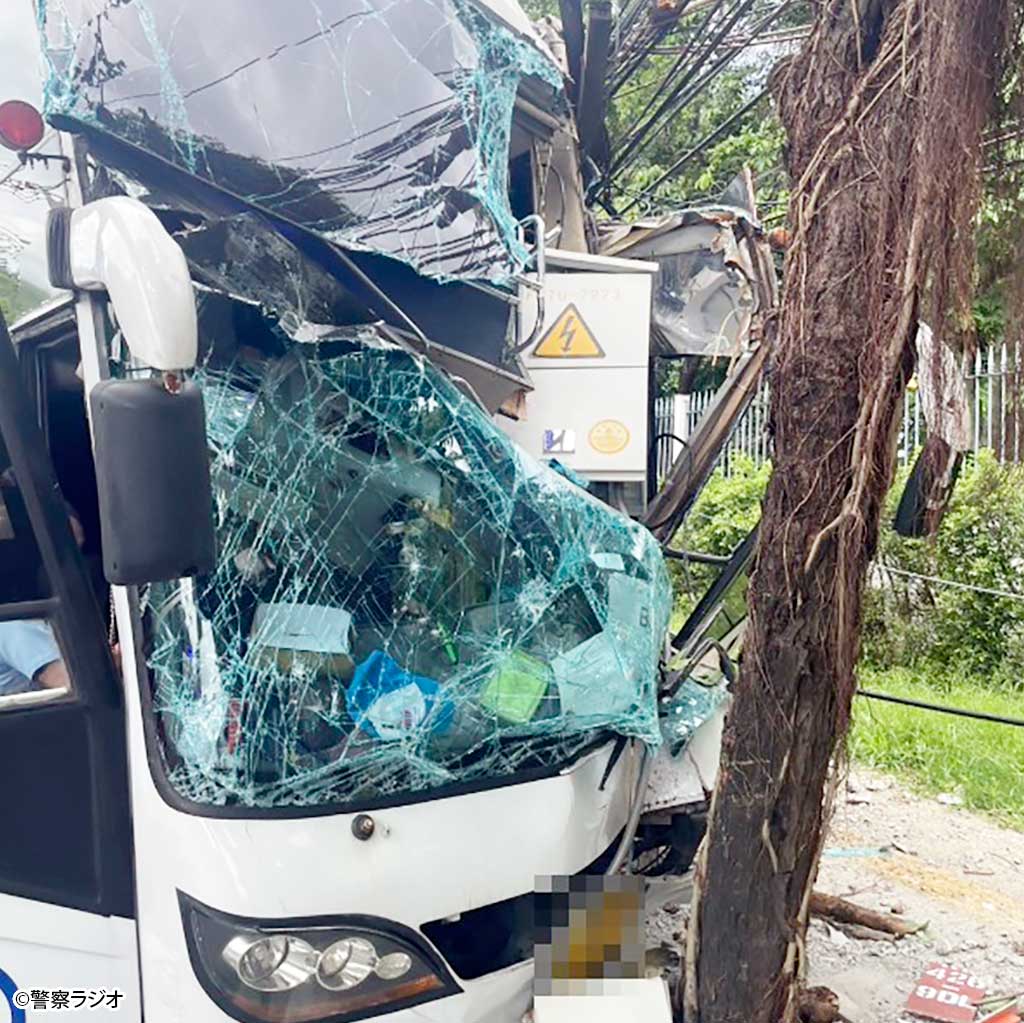 タイ人のバス運転手(45歳)によると、スワンナプーム国際空港から留学生45人をアジア工科大学院ランシットキャンパスに送迎している最中に事故が起きたという。事故現場付近の200mほど前からブレーキが効かないことに気付き、バスの制御を試みたが前方に路線バスが停車しており、事故を最小限に抑えるためにやむを得ず電柱に衝突することを選んだとのこと。
