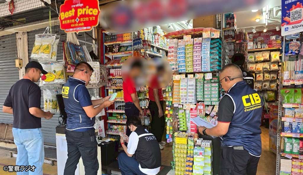 6月11日、警察中央捜査部(CIB)とタイ食品・医薬品委員会(FDA)がバンコク都チャトチャック区周辺で雑貨屋6店舗を摘発した件について会見を行った。