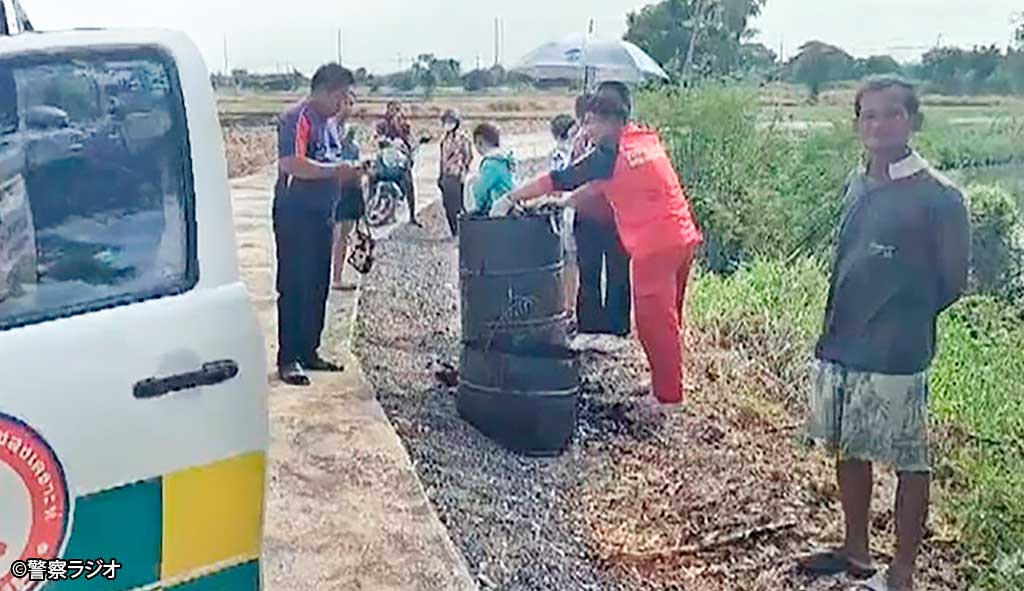 6月23日午前8時半頃、中部ロッブリー県の道路建設現場でアスファルトの液体が入ったドラム缶の中から女性が発見された。女性はすぐに救助されたが、全身がアスファルトの液体に浸かっていたため意識のない状態で病院へ搬送され、現在も集中治療を受けている。