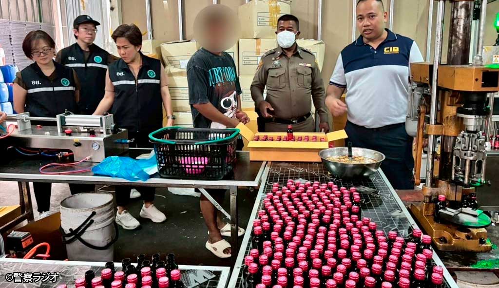タイ警察中央捜査部(CIB)とタイ食品・医薬品委員会(FDA)などが6月20日、バンコク近郊4県にある5カ所の「咳止め薬」製造工場・倉庫摘発に関する会見を行った。