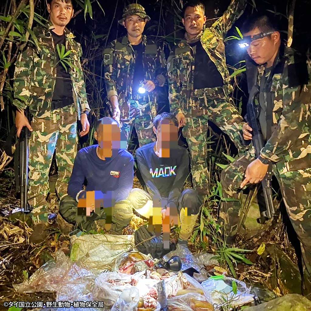 逮捕されたのは、いずれも現場近くに住むタイ人の男3人(38歳2人と45歳)。押収品には、イノシシの肉24.8キロ、ブタオザルの肉3キロの他、未登録の猟銃1丁と実弾、ヤーバー9錠などが含まれていた。(9月12日=マティション)