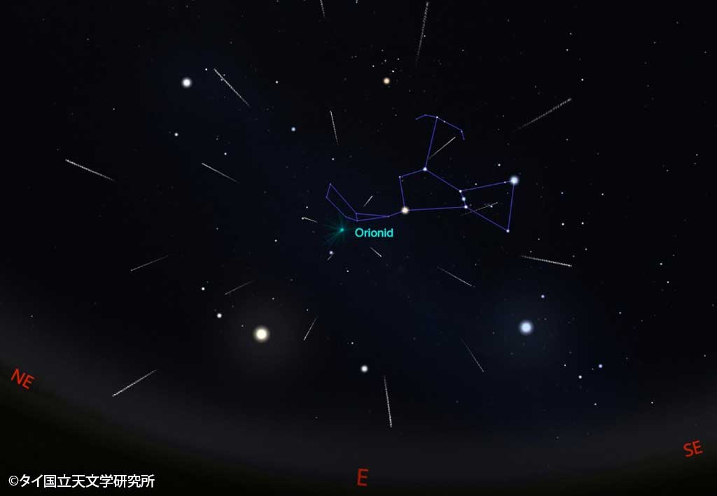 2025.10.21 タイローカルニュース オリオン座流星群が観測可能21日夜から22日未明がピーク タイ国立天文学研究所(NARIT)はオリオン座流星群が最も活性化(極大)する時間帯を告知した。 タイでは10月21日夜から22日未明まで、1時間あたり最大20個の流星が肉眼で観測できるという。午後10時半頃に東の空でオリオン座(流星群の放射点)が現れ、最も観測しやすい時間帯は午前0時頃とのこと。 WISE公式LINEの友だち登録で、記事の続きをご覧になれます! 新規友達追加 既に友達登録済の方はこちら LINE友達追加ボタンで問題が発生する場合、こちらからご報告下さい。 WiSE公式LINEとは? WiSE公式LINEでは、毎日タイについての最新ニュースを配信。 タイ生活に欠かせない情報や、WiSE公式LINEフォロワー限定の、プレゼントキャンペーン等も実施しています。 この機会に是非ご登録ください。