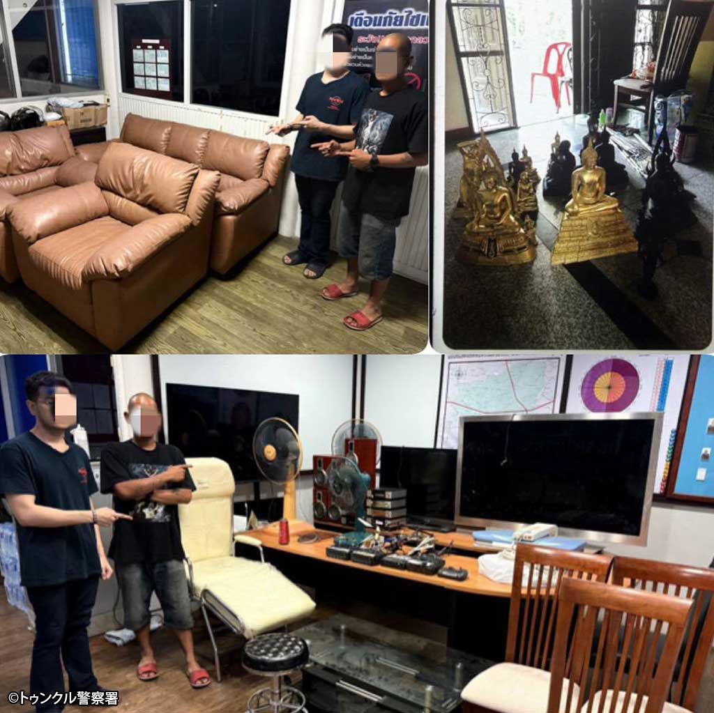 2025.11.3 タイローカルニュース 男2人が隣人宅に空き巣家具、エアコンなどを持ち去る 10月28日、バンコク都トゥンクル区の民家に暮らす高齢女性宅を空き巣したとして男2人が逮捕された。 男らは女性が留守の間を狙って、仏像、小物、車、衣服、家具やエアコン6機などすべての家財道具を盗んだという。被害者女性は「家の中がまっさらの状態でまるで新居のようだった」と話している。 WISE公式LINEの友だち登録で、記事の続きをご覧になれます! 新規友達追加 既に友達登録済の方はこちら LINE友達追加ボタンで問題が発生する場合、こちらからご報告下さい。 WiSE公式LINEとは? WiSE公式LINEでは、毎日タイについての最新ニュースを配信。 タイ生活に欠かせない情報や、WiSE公式LINEフォロワー限定の、プレゼントキャンペーン等も実施しています。 この機会に是非ご登録ください。 今週のタイのニュース動画まとめ WiSE公式LINE登録後に動画が視聴可能となります。 今週のタイのニュース動画まとめ