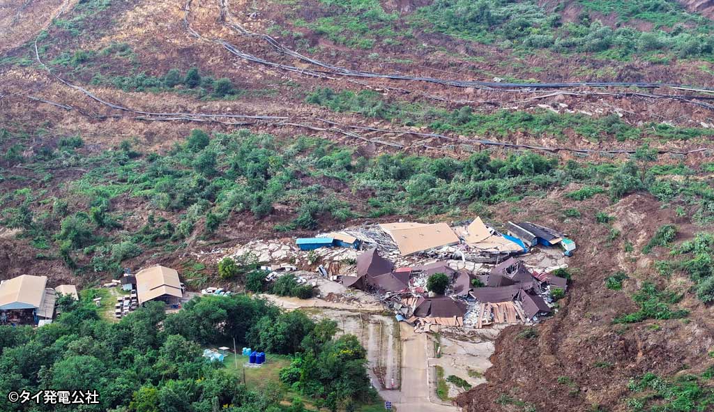 タイ発電公社(EGAT)によると、土砂投棄区域は採掘場から運ばれた土砂が山のような状態となっており、土砂崩れが起きたという。被害範囲は1㎢にもおよび、請負会社の事務所ビルや複数台の車両が流されたとのこと。原因については、10月31日から続く連日の雨で地盤が緩んだことで土砂崩れが起きたのではないかと推測されている。