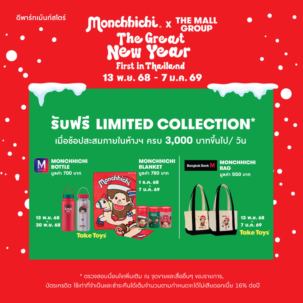 日本の人気キャラクター「モンチッチ」とThe Mall Groupの年末コラボキャンペーン「MONCHHICHI X THE MALL GROUP:THE GREAT NEW YEAR FIRST IN THAILAND」が開催中。
