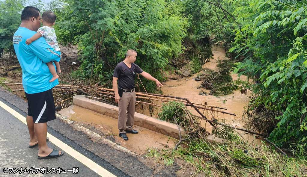 5月10日夕方、東北部ナコーンラーチャシーマー県のリゾート地ワンナムキアオでは、約3時間にわたって続いた暑季の暴風雨により鉄砲水が発生。