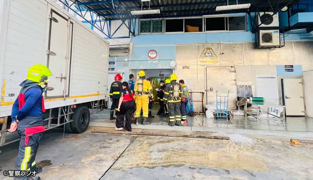 製氷工場でアンモニアが漏れる